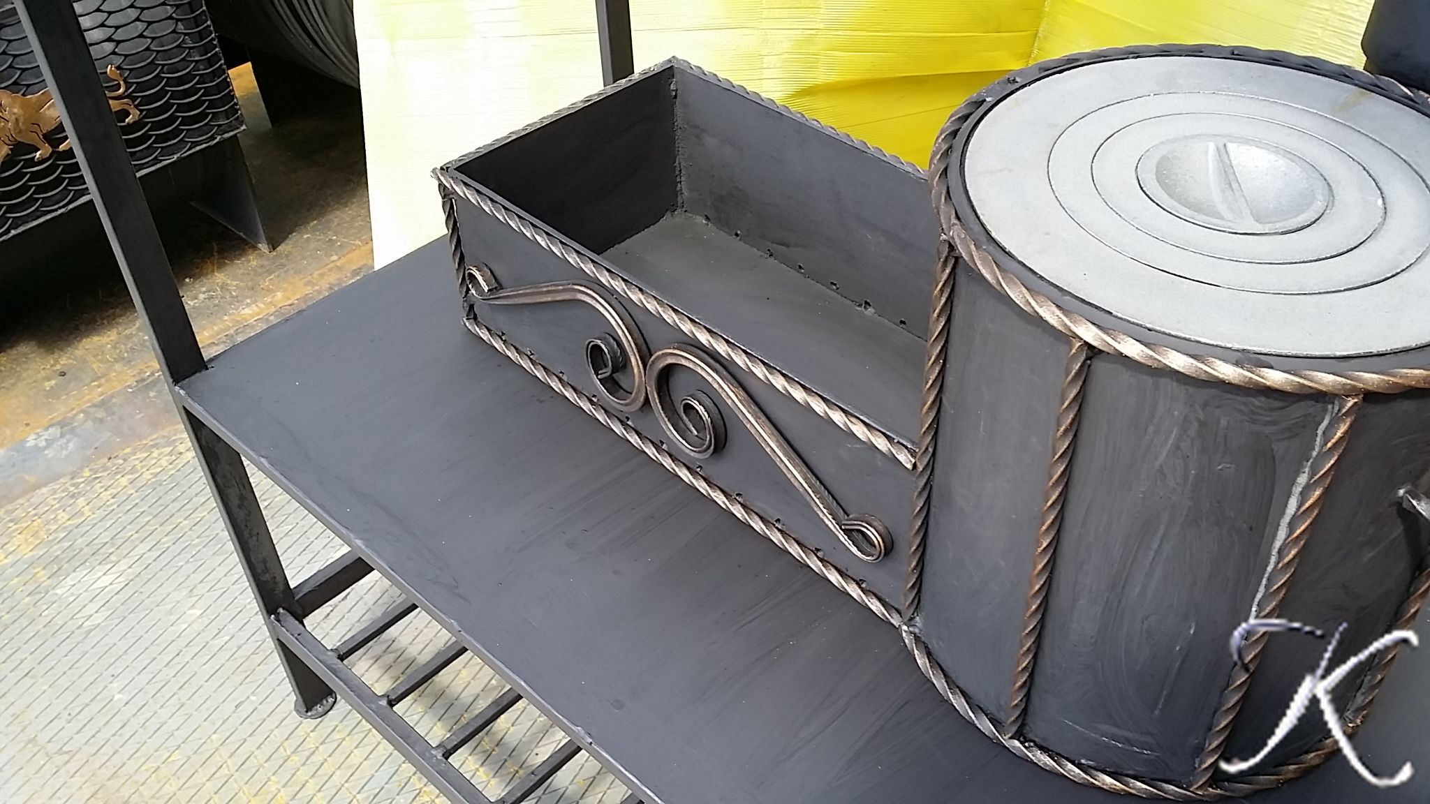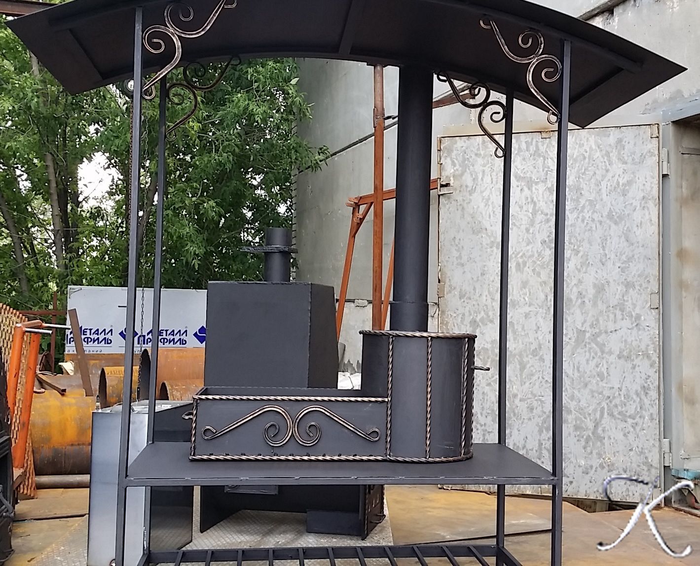 Печь комплектуется сьмной конфоркой из чугуна. Мангал подходит как для приготовления шашлыков , так и для готовки в казане или котелке